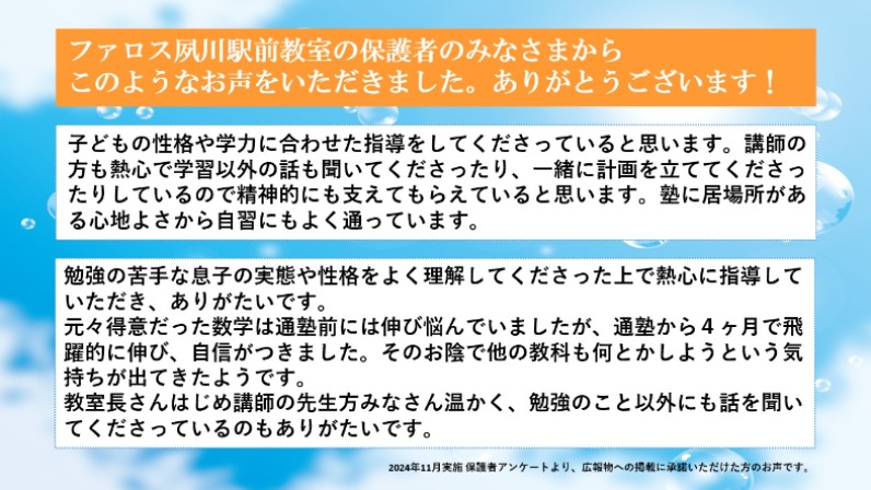 ファロス夙川駅前校のHPにアクセスいただき誠にありがとうございます。