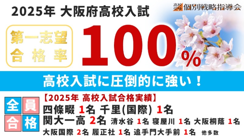 高校:追手門大手前・大阪国際(複数名)・大産大附属(複数名)・大阪桐蔭・関大第一(複数名)・金蘭会・常翔学園・東大阪敬愛・夕陽丘学園・履正社・初芝橋本
