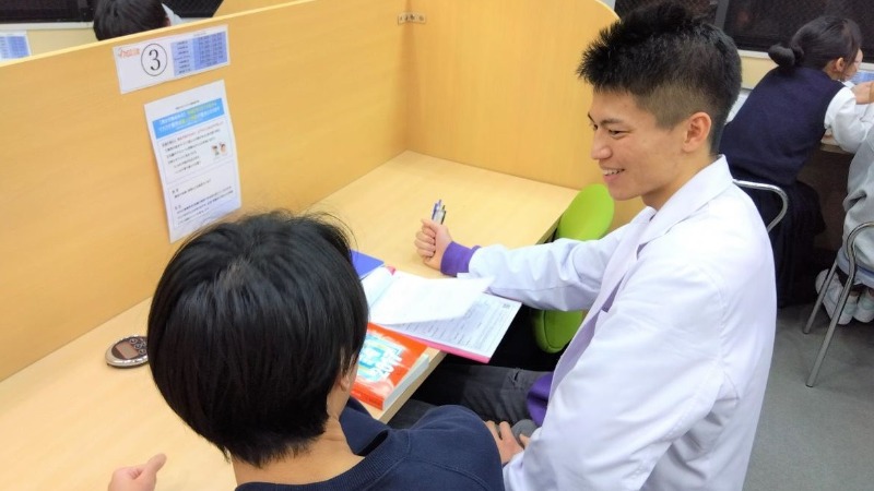 ①1コマ80分、先生1人に対して生徒2人の個別指導を行います。自分に合った先生が選べます。