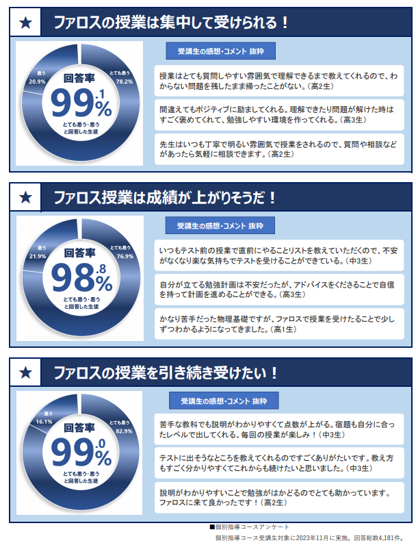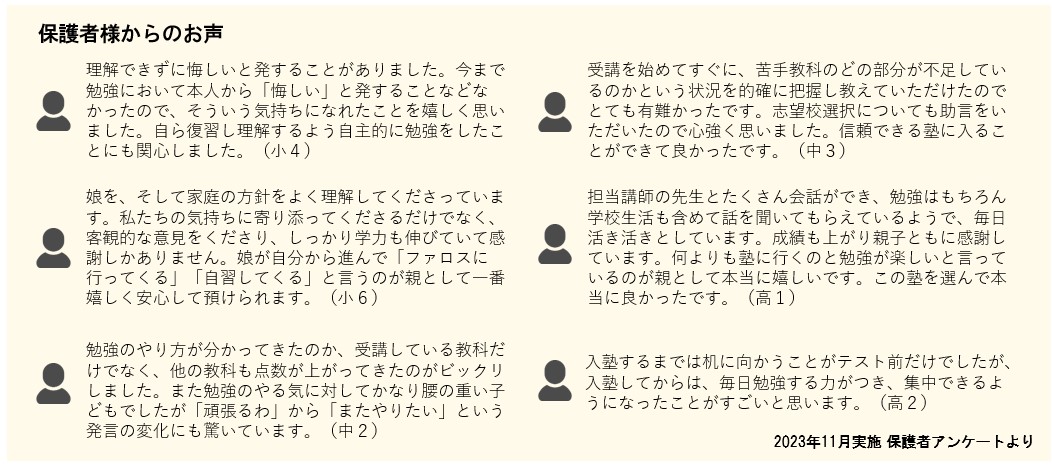▲お知らせ一覧に戻る保護者・生徒の皆様のお声をご紹介!