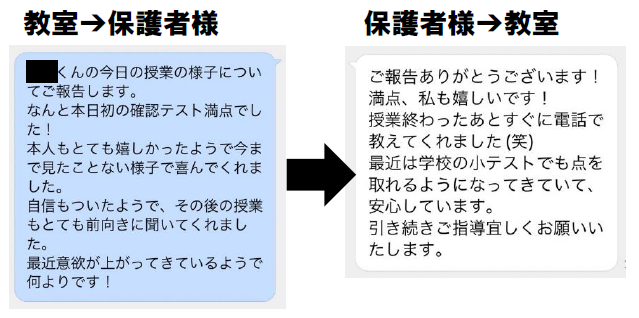 ↑ LINEを活用した連携例。お子さまの様子の情報共有に加え、LINEによるご相談も受け付けております。